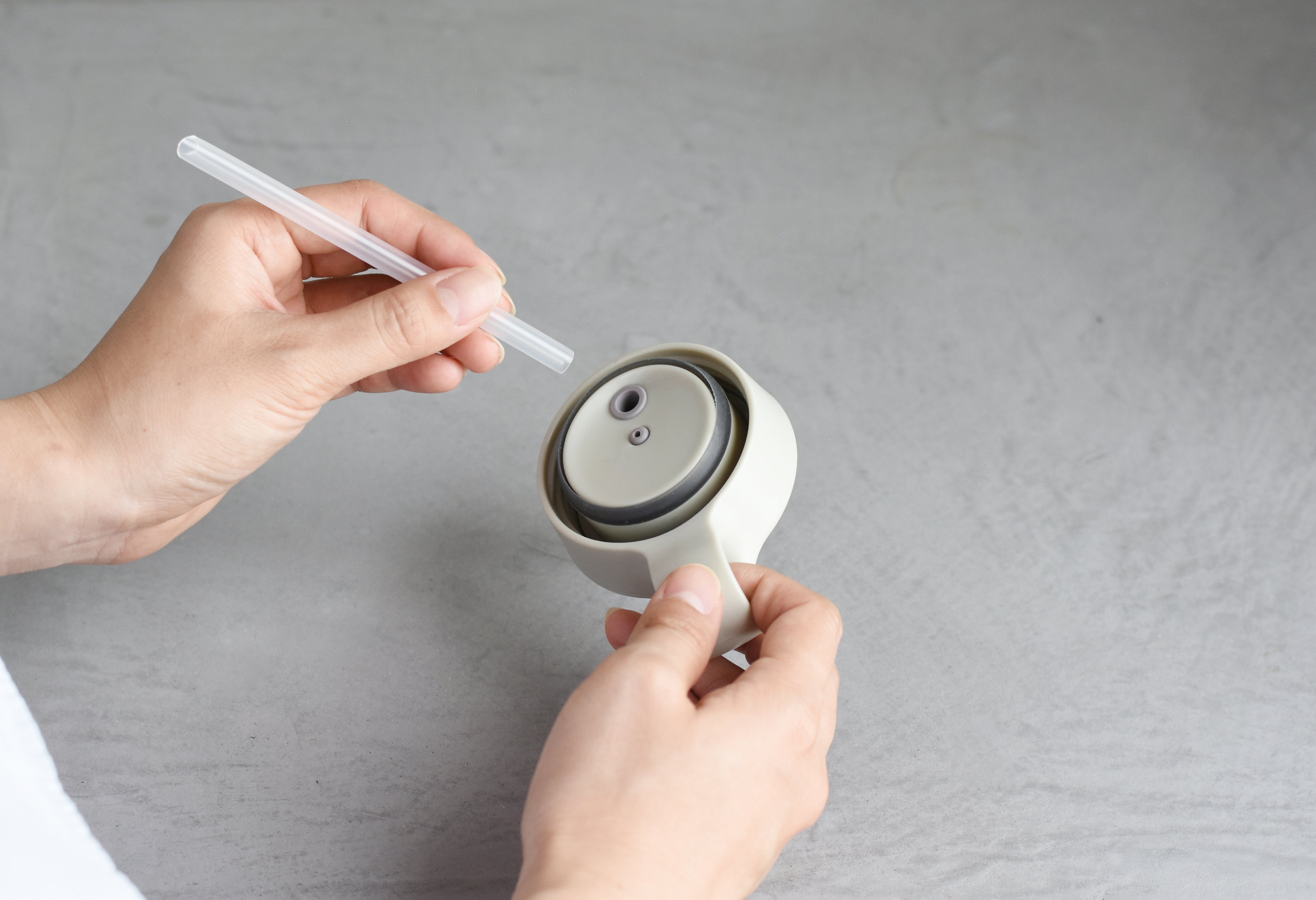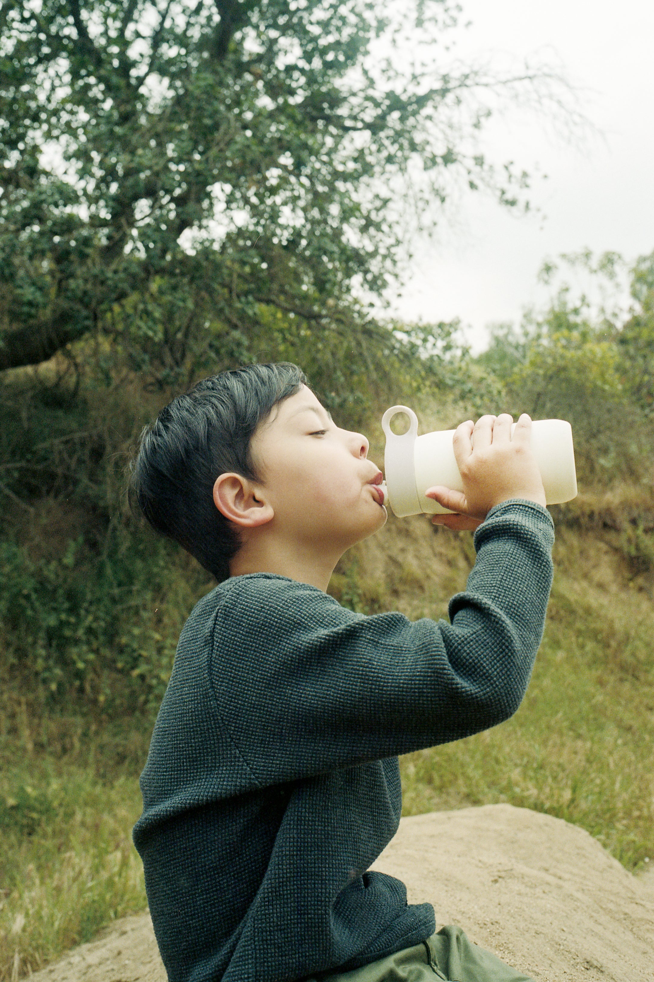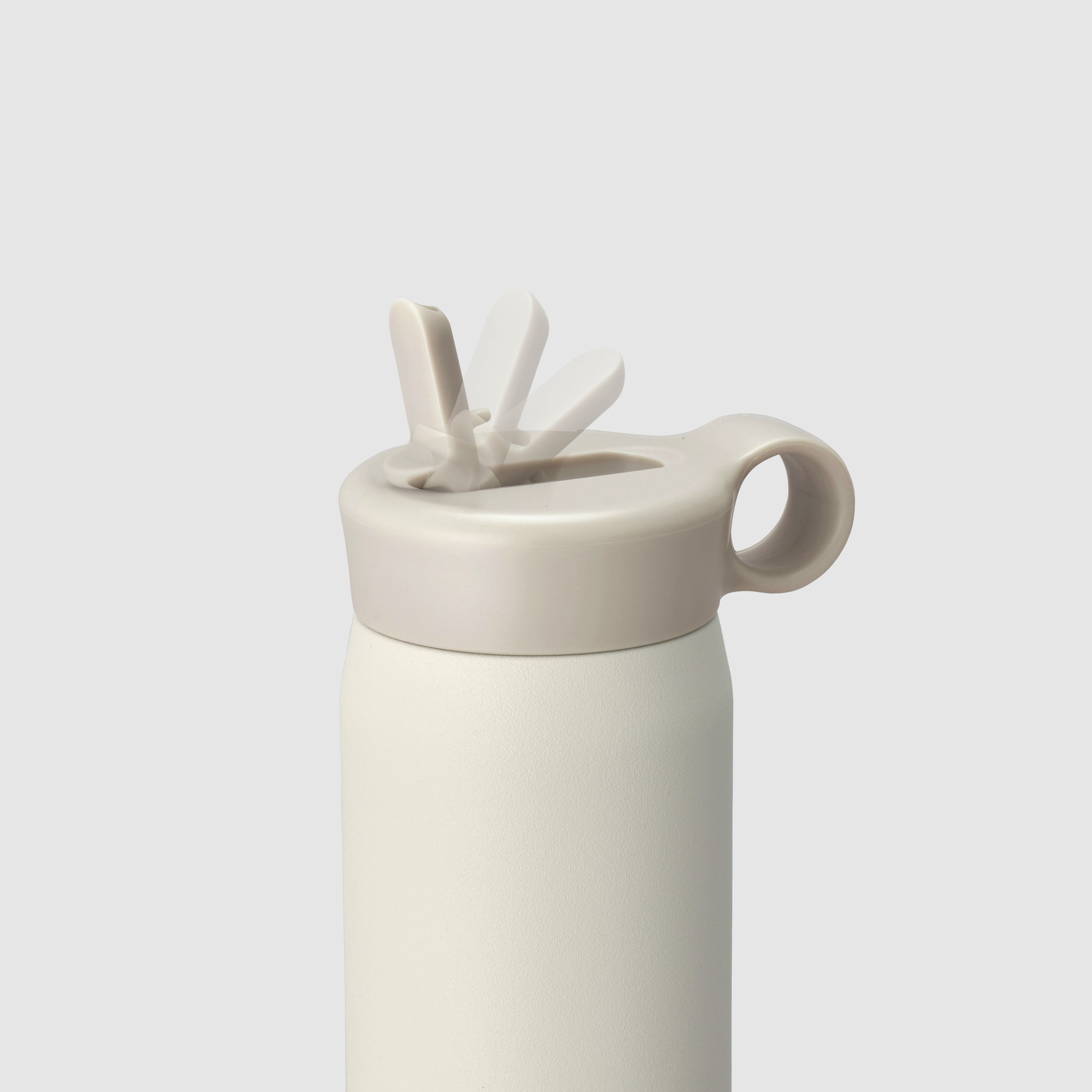 The PLAY TUMBLER is a bottle designed specifically for small children's hands, making it easy to grip. Its straw-shaped spout is perfect for easy sipping, and the straw can also be removed for drinking without it. The wide opening allows for easy pouring, adding ice cubes, and cleaning. With vacuum insulation, it keeps cold drinks cool for an extended time.