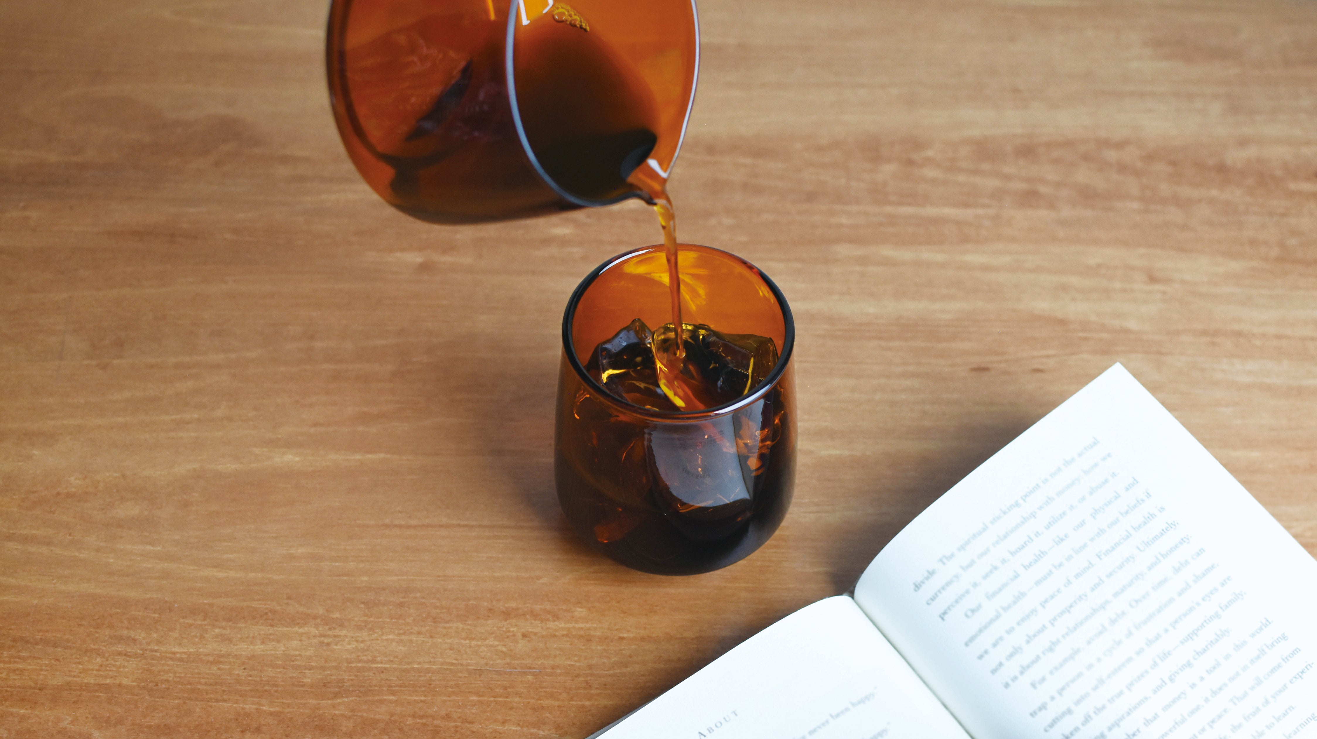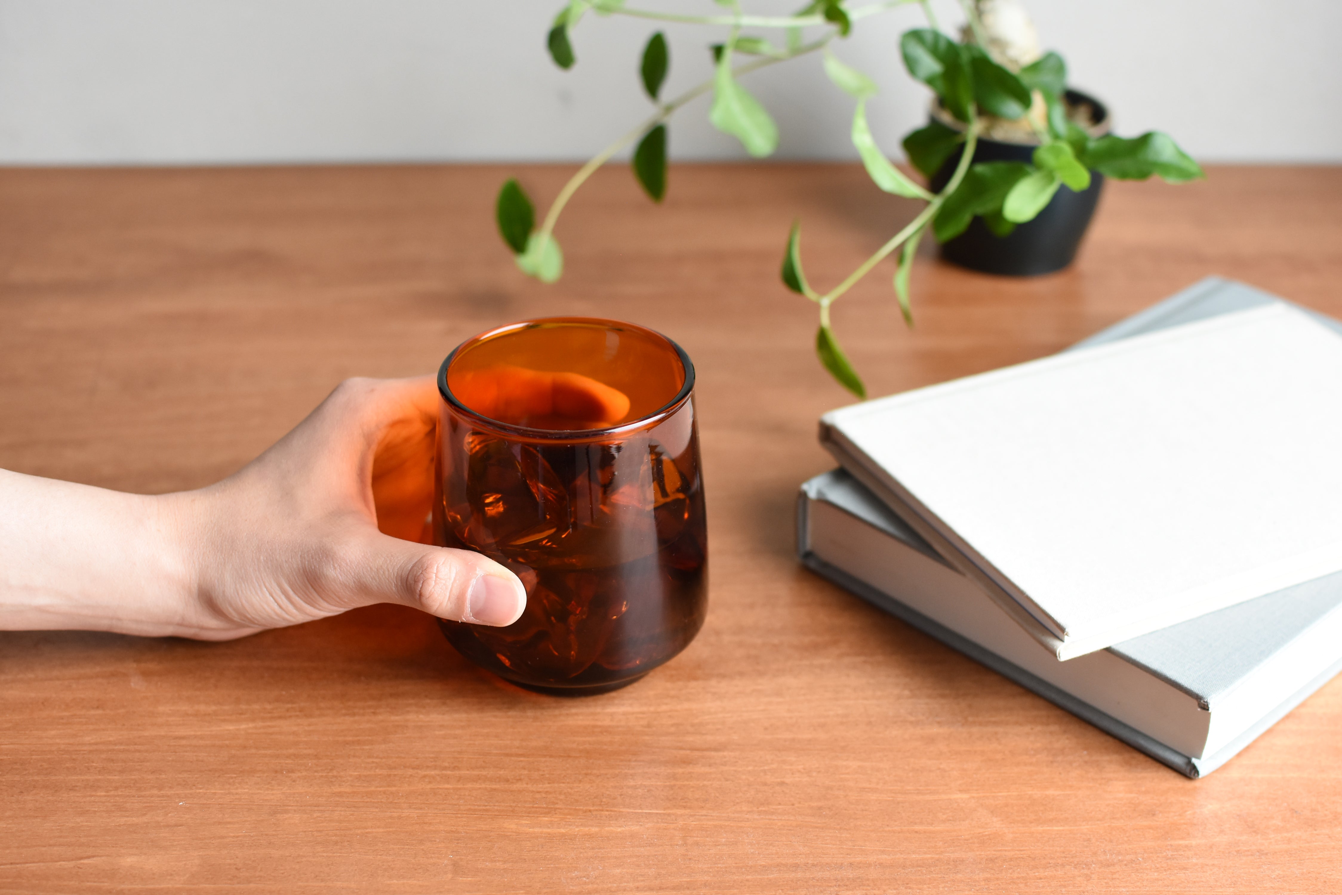 The amber color of the **SEPIA** collection evokes feelings of nostalgia and comfort, much like looking at an old photograph. The gently curved shape of the glass allows for a firm grip while drinking or washing.